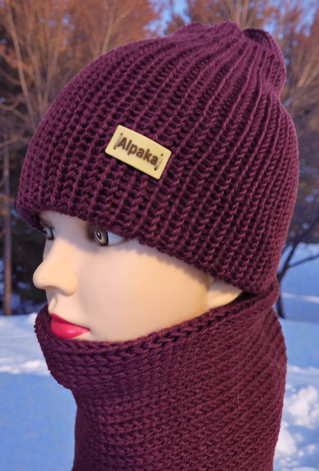 Čelenka nebo Nákrčník je zdobena silikonovou nášivkou ,,Alpaka", která stále drží svůj tvar i po více praní.