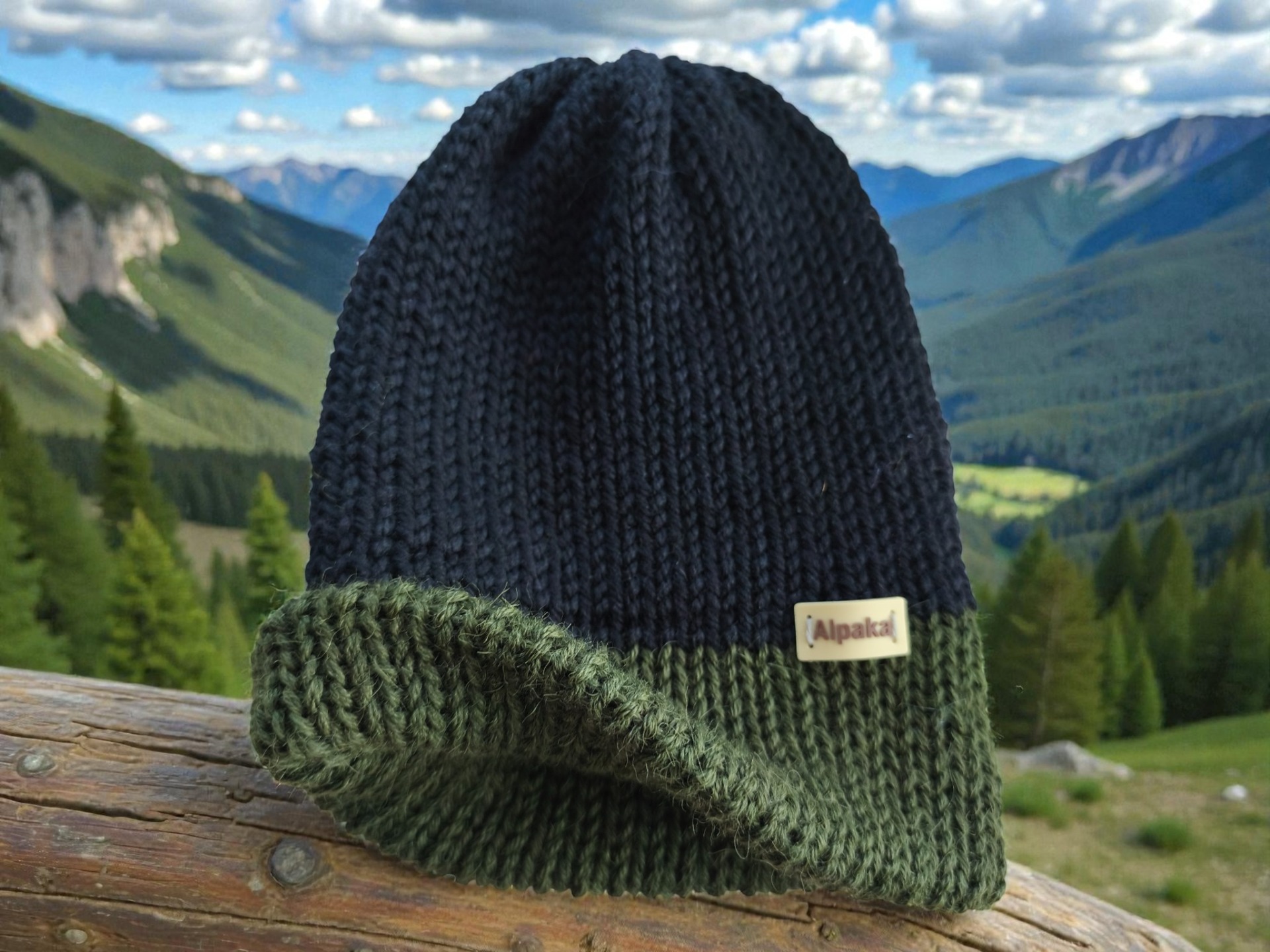 Elegantní pletená oboustranná čepice vyrobená z prémiové khaki - 65% Vlny 35% Alpaky / černá příze - 100 % Alpaka, která je dvojitá - pletená hladkým vzorem. Investujte do kvality, která dýchá s vámi. Vlna je technický zázrak přírody – má vynikající termoregulační schopnosti, je přirozeně antibakteriální a odolná vůči pachům. Více o vlně naleznete v sekci ,,O nás".